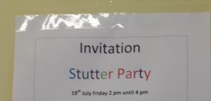 We need to celebrate ‘the natural variation, the unique skills, experiences and traits of neuro-divergent children’ (Constantino, 2018). The group’s solution was to have a party to celebrate stuttering. Every good party needs an organising committee; a designer, a secretary, a games organiser and music coordinator. The designer wanted his poster displayed in the waiting area for all to see and in case there were any doubts about the theme of the party he threw in a few repetitions for good measure.